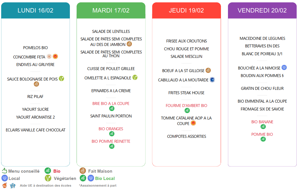 Menus cantine