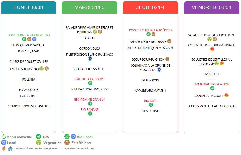 Menus cantine