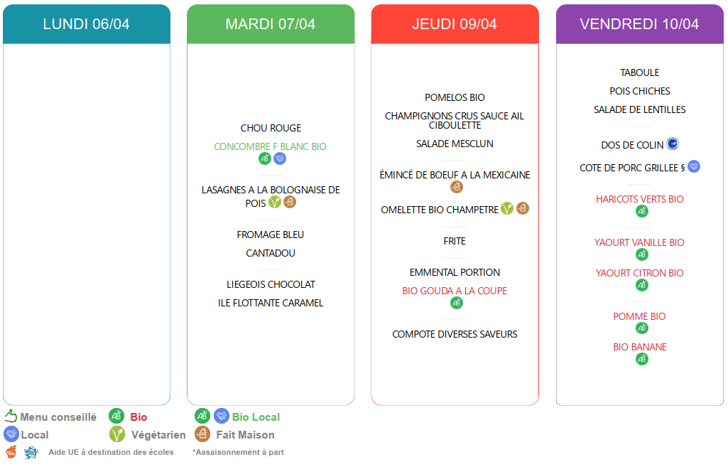 Menus cantine